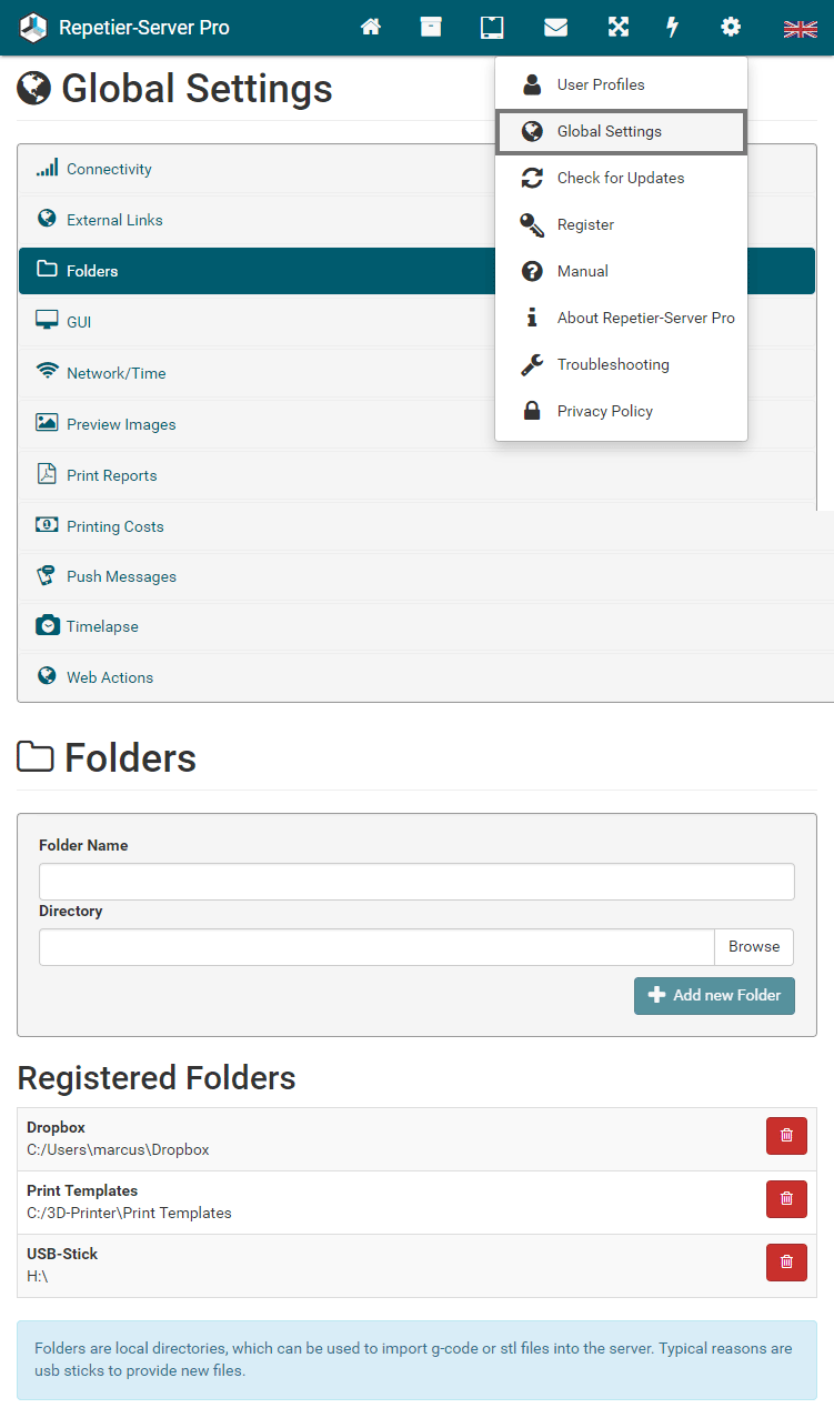 To add an new Repetier-Server instance, click the button