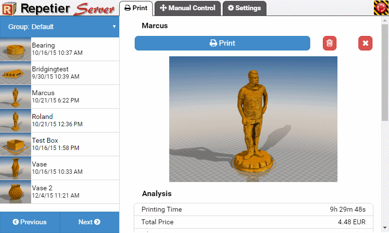 With Repetier-Server you can calculate in advance what a print will cost.